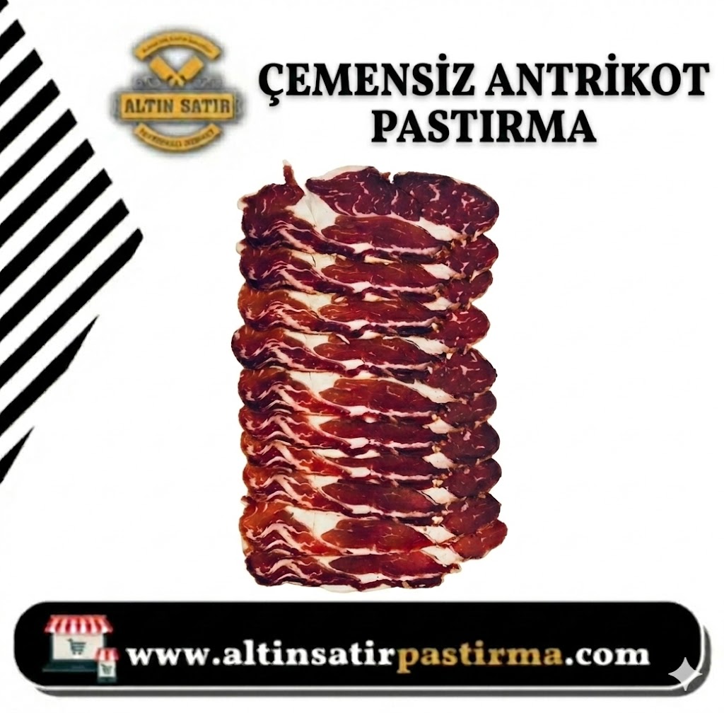 Pastırmanın tadını sade sevenlere özel üretim aşamasını tamamlamış orta yağlı antrikot pastırmanın yüzeyinden çemeni sıyırılarak sunulan lezzettir.